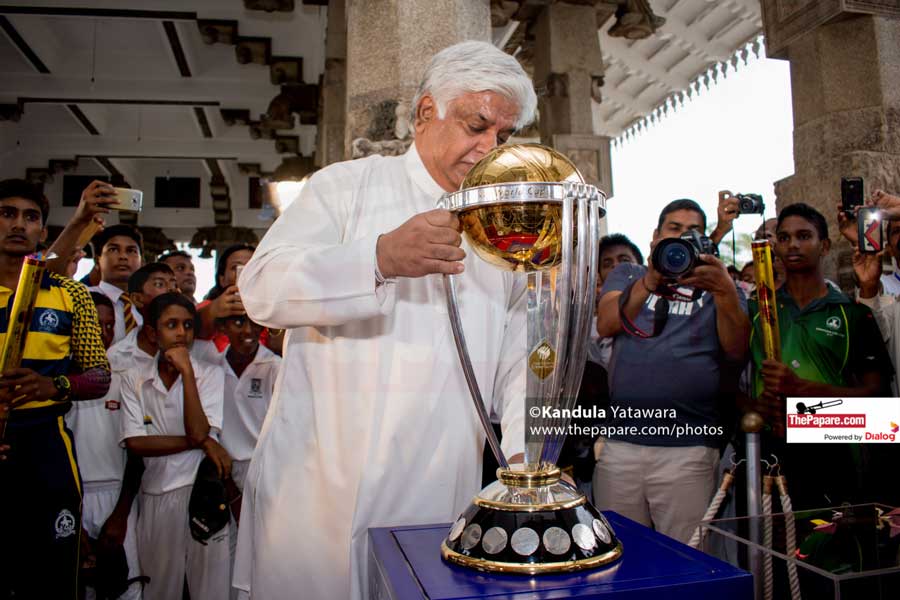 இலங்கை வந்தடைந்துள்ள வெற்றிக் கிண்ணம், அமைச்சரும், நாட்டுக்கு 1996ம் ஆண்டு உலகக் கிண்ணத்தை வென்றுகொடுத்த இலங்கை கிரிக்கெட் அணியின் முன்னாள் தலைருவமான அர்ஜுன ரணதுங்கவினால் காட்சிப்படுத்தப்பட்டது.