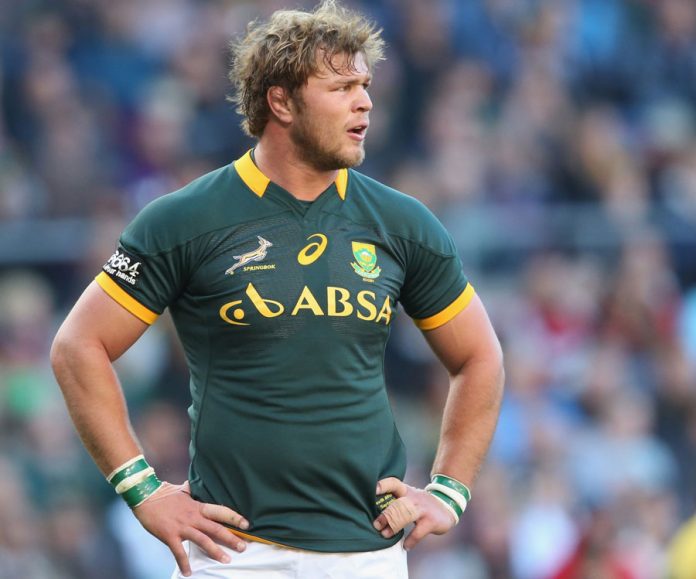Vermeulen, Du Toit and Kwagga Smith make up the back row whilst Franco Mostert partners Etzebeth to lock out the scrum. Hooker Malcolm Marx is joined in the front row by Steven Kitshoff and Frans Malherbe.