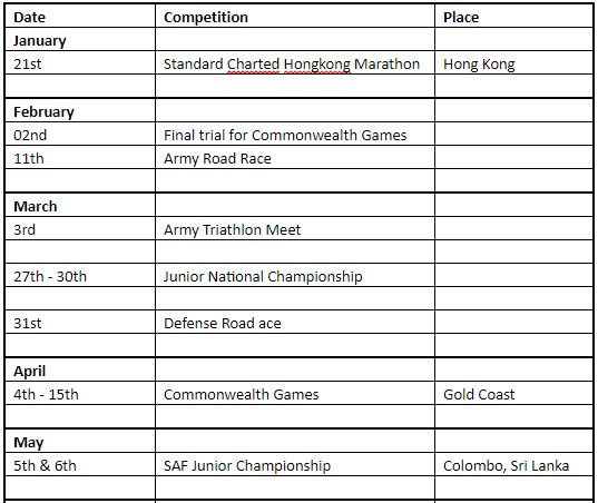 இலங்கையின் தடகள விளையாட்டு வீரர்களுக்கான ஒன்றியம் (AASL) அண்மையில் அடுத்த வருடத்திற்கான போட்டித் தொடர் அட்டவணையினை வெளியிட்டிருந்தது. இதனடிப்படையில் அடுத்த வருட ஆரம்பத்தில் 2018ஆம் ஆண்டின் பொதுநலவாய விளையாட்டுப் போட்டிகளுக்கான தேர்வு நிகழ்ச்சி நடைபெறவுள்ளது.