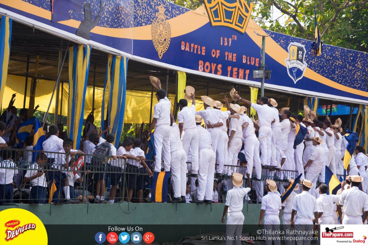 Sixteen year old Pasindu Sooriyabandara stroked an exhilarating and unbeaten 97 as Royal College staged a brilliant fight back against S. Thomas’ College on day two of the 137th Battle of the Blues at SSC grounds.