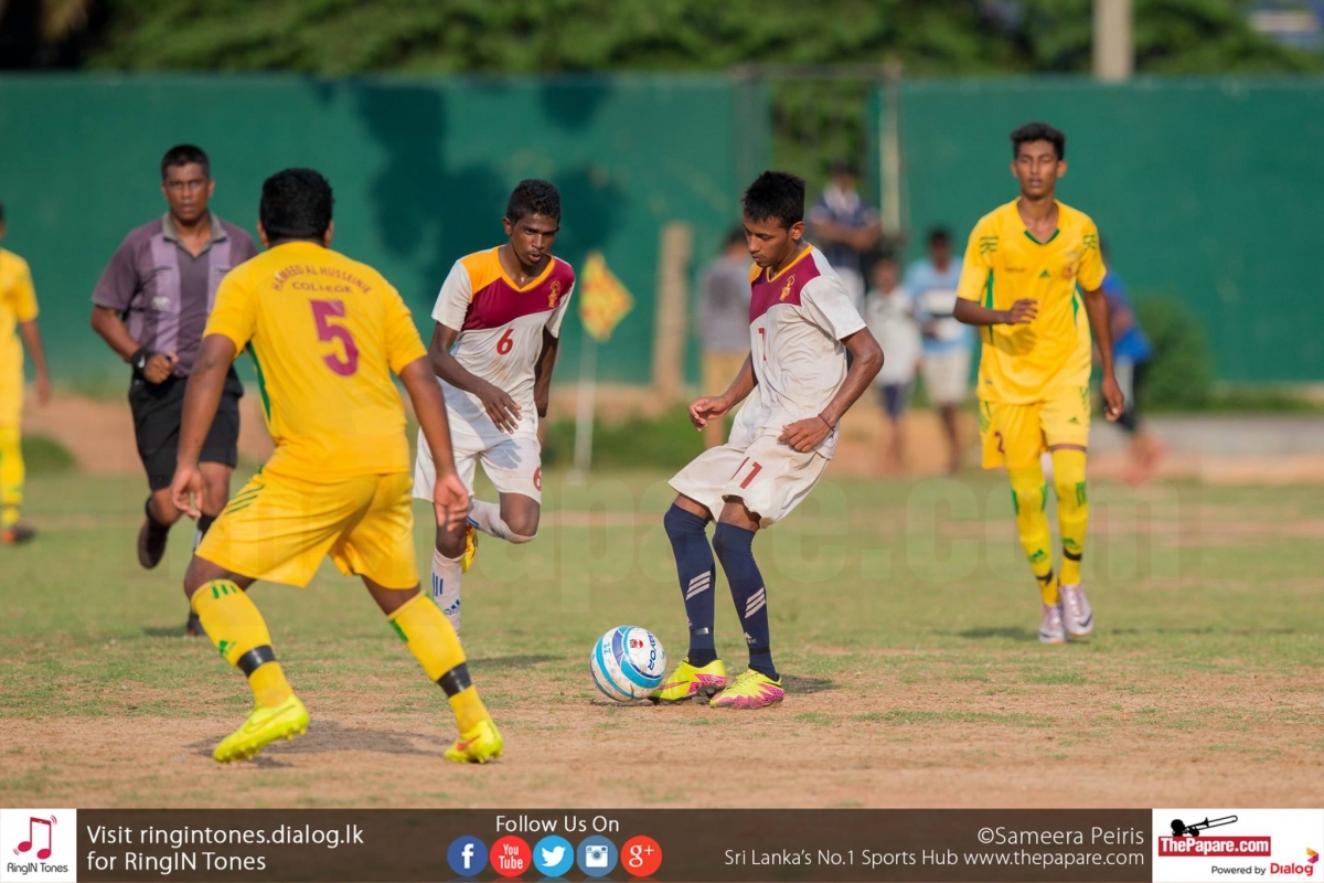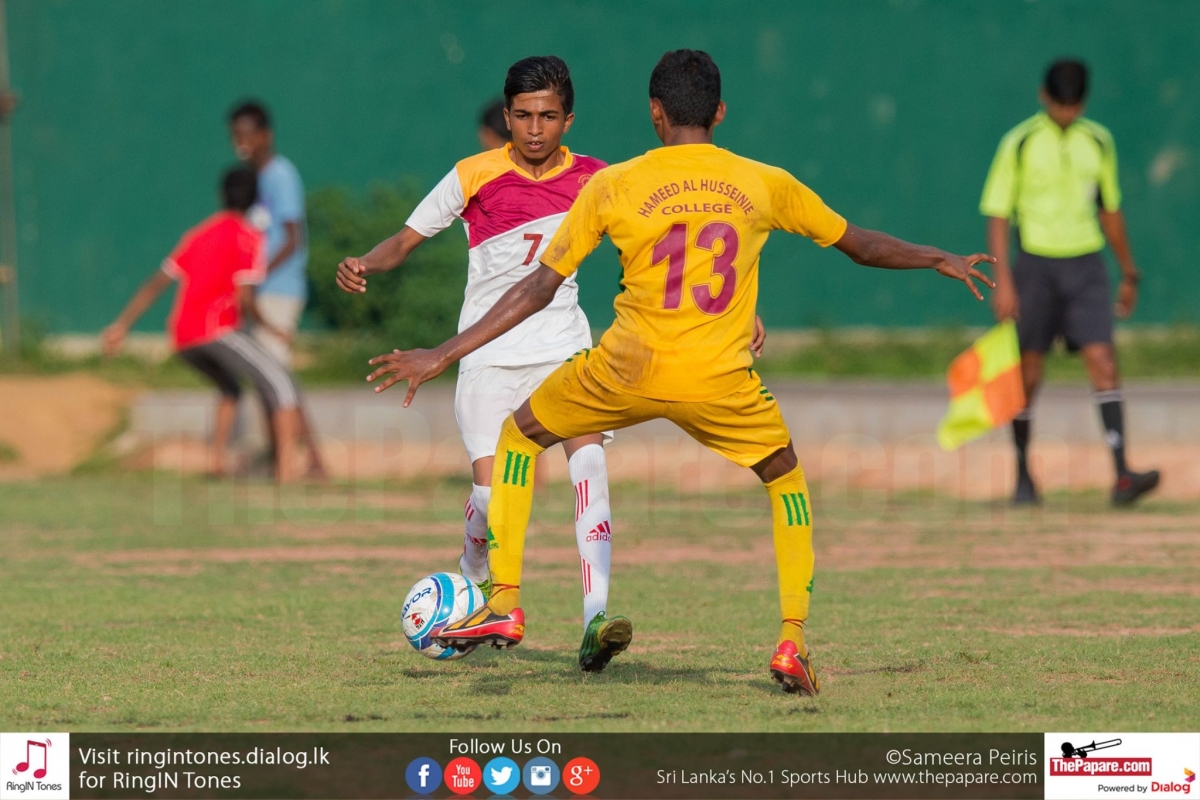 Hameed Al Husseinie College captain Mohamed Mujeed scored two goals as they defeated Wickramabahu College, Gampola in the Sri Lanka Schools Division I Football Championship Quarter Final, at the P.D.Sirisena Ground.