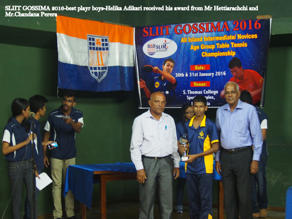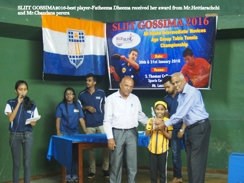 Helika Adhikary of Royal College and Fathmath Deema Ali of Royal Institute Colombo were awarded ‘Most Valuable Player’ in the Boys’ and Girls’ category respectively at the SLIIT GOSSIMA 2016, All Island Table Tennis Championship.