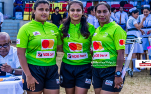 Blazing female referee talent Udeshika Abeysinghe (In the middle) officiated the game while the rising talents Malsha Samaraweera (Left) and Raveena Ranaweera (Right) featured as Assistant Referees.