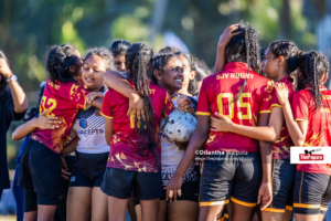 Though the Swarnajayanthi girls failed to put any points on the board, they struck with occasional brilliance. However, the Sarasavi defensive line was impenetrable. Every time Swarna Jayanthi attempted to build momentum, they were met with a wall of black and white jerseys, culminating in turnovers that Sarasavi girls ruthlessly punished. Apart from the girls’ affairs, there was an exhibition game between the boys’ sides of the schools and the hosts; Swarnajayanthi boys dominated the encounter to post a 17 – 00 victory.