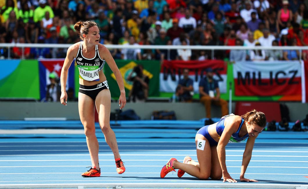Abbey D’Agostino of USA and Nikki Hambling of New Zealand collided during their heat of 5000m event and D’Agostino was quick to reach out to Hambling who was still on the floor reportedly telling her “get up we need to finish this” instead of continuing to catch up to the rest of the runners. As the race continued it was D’Agostino who was in severe pain as she has badly injured her ankle in the clash, Hambling was quick to reciprocate the earlier gesture by D’Agostino hanging back to encourage the American to finish her race. Both Athletes then embraced each other before D’Agostino received medical attention in a wheel chair.
