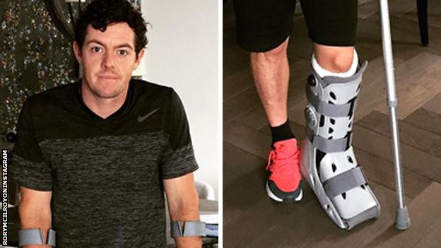 McIlroy, 26, wrote on Instagram: “Total rupture of left ATFL (ankle ligament) and associated joint capsule damage in a soccer kickabout with friends.