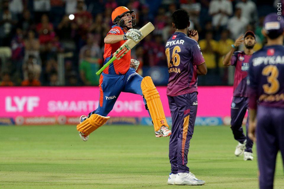 குஜராத் லயன்ஸ் அணி சார்பாக டுவயின் ஸ்மித் 37 பந்துகளில் 9 பவுண்டரிகள் மற்றும் 1 சிக்ஸர் அடங்கலாக 63 ஓட்டங்களையும், ப்ரெண்டன் மெக்கலம் 22 பந்துகளில் 43 ஓட்டங்களையும், சுரேஷ் ரயினா 28 பந்துகளில் 34 ஓட்டங்களையும், தினேஷ் கார்த்திக் 20 பந்துகளில் 33 ஓட்டங்களையும் பெற்றனர். பூனே சுப்பர்ஜையன்ட்ஸ் அணியின் சார்பாகப் பந்து வீச்சில் அஷோக் டிண்டா மற்றும் திசர பெரேரா ஆகியோர் தலா 2 விக்கட்டுகளை கைபற்ற, ரஜட் பாதியா 1 விக்கட்டைக் கைப்பற்றினார். இந்தப் போட்டியின் ஆட்ட நாயகனாக குஜராத் லயன்ஸ் அணியின் டுவயின் ஸ்மித் தெரிவுசெய்யப்பட்டார்.