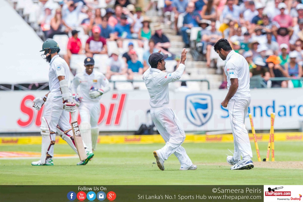 දකුණු අප්රිකානු පළමු ඉනිම – 338/10 (73.5): ෆැෆ් ඩියු පෙලෙසිස් 79, හෂීම් අම්ලා 78, ටෙම්බා බව්මා 58, ඩීන් එල්ගාර් 43, වනිඳු හසරංග 3/72, ධනංජය ද සිල්වා 2/09, ලසිත් ඇඹුල්දෙණිය 2/83.