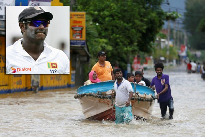 நேற்று இங்கிலாந்து அணிக்கு எதிரான முதல் டெஸ்ட் போட்டிக்கு எஞ்சலொ மெதிவ்ஸ் மற்றும் சக வீரர்கள் தயாராகிக் கொண்டு இருக்கும் போது தாய்நாட்டில் பல நாட்களாக கடும் மழை, வெள்ளம் ஏற்பட்டதோடு மண்சரிவும் ஏற்பட்டு சுமார் இரண்டு லட்சத்திற்கு மேற்பட்ட மக்கள் பாதிக்கப்பட்டிருந்தனர். அத்தோடு 38 பேர்கள் இதுவரை இந்த அனர்தத்தால் உயிரிழந்துள்ளனர். அனர்தத்தால் இறந்தவர்களை நினைவு கூர்ந்து துக்கம் அனுஷ்டிக்கும் வகையில் இலங்கை வீரர்கள் தமது ஆடையில் கருப்பு பட்டி அணிந்து விளையாடி இருந்தனர்.