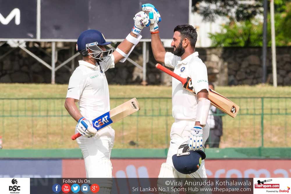 KL Rahul looked good for a big one but his innings came to an end in disappointing fashion as he was involved in a mix-up with Pujara on 57 just 3 overs into the post-lunch session. Dinesh Chandimal was the only one who stood out somewhat in the field and managed to catch Rahul short of his crease to give Sri Lanka the breakthrough.