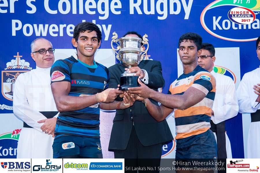 S. Thomas’ College retained the Archibald Perera Memorial Trophy for the third consecutive year after a nail-biting draw against the much fancied St. Peter’s College outfit this evening at Bambalapitiya. After 80 minutes of pulsating rugby the game ended 25 all.