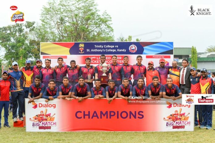 Trinity College triumphed in a thrilling contest on the 23rd of March, securing victory by a commanding margin of 100 runs in the highly anticipated annual one-day limited overs cricket clash (Richard Aluvihare Trophy), coinciding with the historic 105th edition of the Hill-Country Battle of the Blues between Trinity College Kandy and St. Anthony’s College Katugastota.