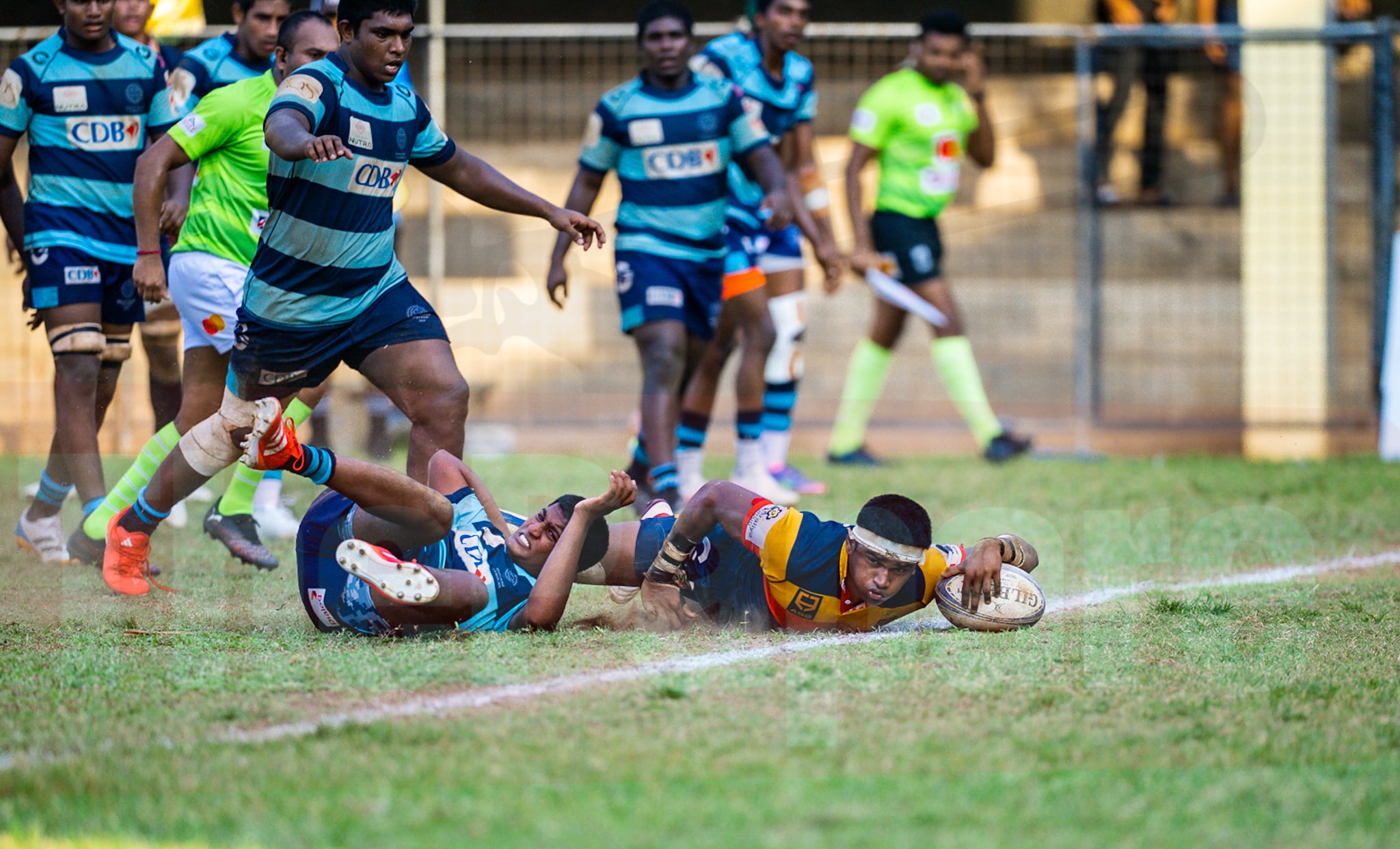 Trinity hit back immediately when Hamza Abdeen charged down a clearance kick and raced over, with Althaf converting. The Lions extended their lead soon after when Udan Wijekoon took a quick tap and set the platform before Althaf finished off the move and added the extras. (WC 05-21 TCK)