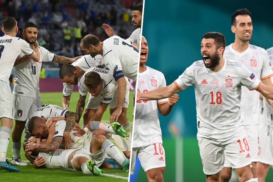யூரோ 2020 கால்பந்து தொடரில் சுவிட்சர்லாந்தை பெனால்டியில் வீழ்த்திய ஸ்பெயின் அணியும், பெல்ஜியத்தை வீழ்த்திய இத்தாலியும் தொடரின் அரையிறுதிக்குத் தகுதி பெற்றுள்ளன.